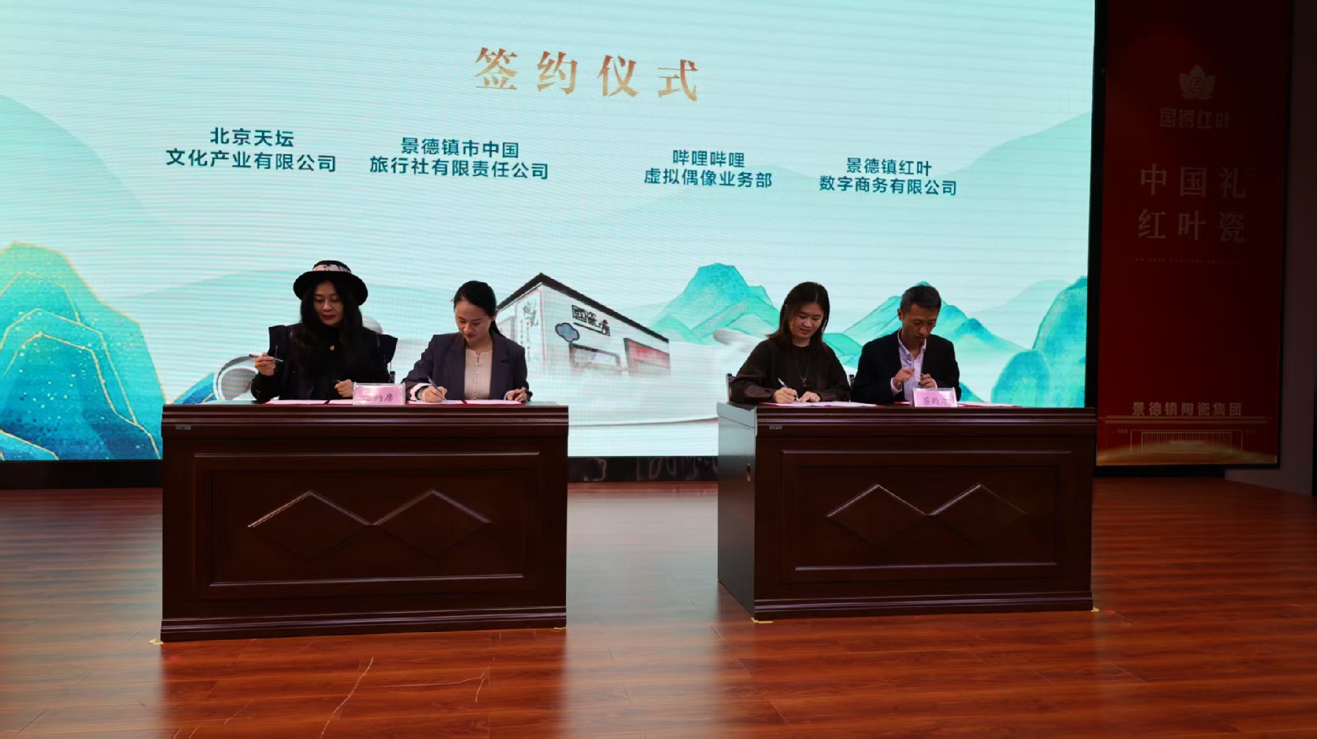 成立大會(huì)上,與會(huì)嘉賓共同觀看了國瓷紅葉畫院宣傳片,現(xiàn)場(chǎng)頒發(fā)了畫院聘書,并完成了與北京天壇文化產(chǎn)業(yè)有限公司、嗶哩嗶哩虛擬偶像業(yè)務(wù)部的合作簽約儀式。